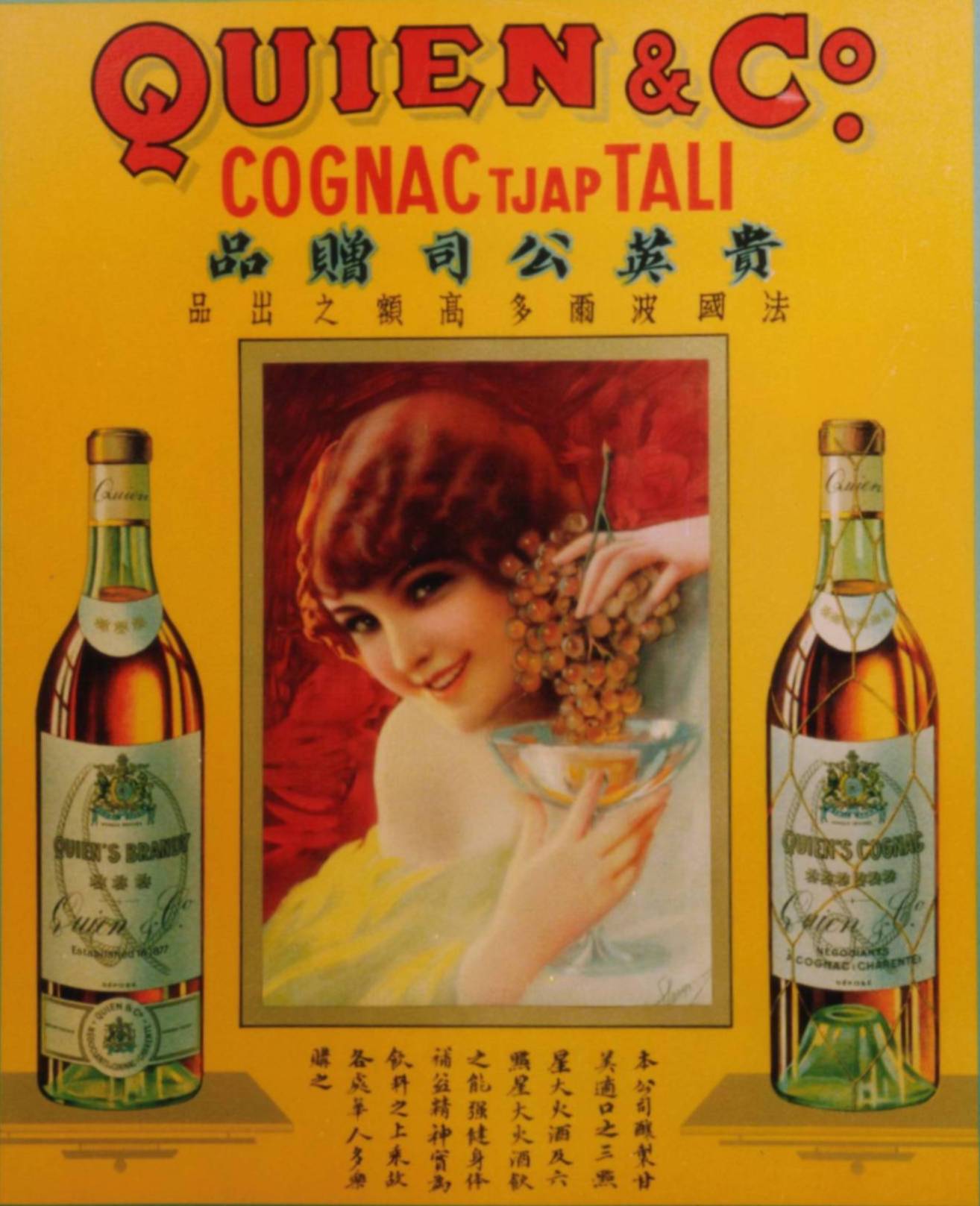 Amazingly it is almost 100 years later in 1877 that a descendant Gustav Adolf Quien (1855-1923) came from Amsterdam to Bordeaux to found the present QUIEN & Cie which originally has specialized in export of fine wines from France to the Dutch Indies (which became Indonesia) and by extension to all the Far East and mainly China.